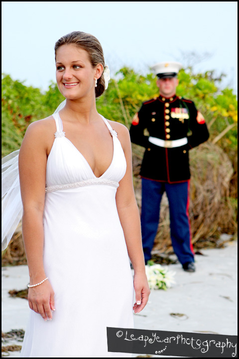 We recently had the pleasure of photographing Jessica and Vince’s wedding and reception at the Pink Shell. For most weddings, the Bride is the star of the show with the Groom looking good, but in no comparison to the Bride. For this wedding Vince, in his United States Marine Corps Dress Blues, gave Jessica a run for her money. In the end though, Jessica still out-shined everyone, including Vince…